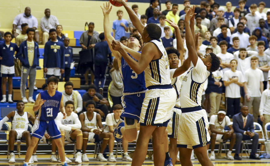 The Blue Jay basketball team dropped a tight contest to the Tigers, 47-39, on Tuesday, Jan. 14, at Holy Cross. While Jesuit led after the first and second quarters by one and four points, respectively, the Jays allowed the Tigers to claw their way to a one-point lead at the start of the fourth. Both teams struggled from beyond the arc and were evenly matched across all other categories.