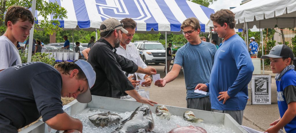 Assisting chairman Mike McMahon ’85 were committee members Ben Bagwill ’12, Michael Heier ’05, Drew Necaise ’05, Pat Morris ’90, and Chris Mills ’80 (set-up/tear down and weighmasters); Jude Trahant ’80, and Gavin Gillen ’98 (awards); Andrew Fuller ’96 (trophies); Gary Discon ’75, Rookie Leopold ’61, Ryan Gootee ’91, George Haydel (sponsorship); Drew Necaise ’05 and Gary Discon ’75 (Yeti Raffle); and D.J. Galiano ’07 (logistics/music).