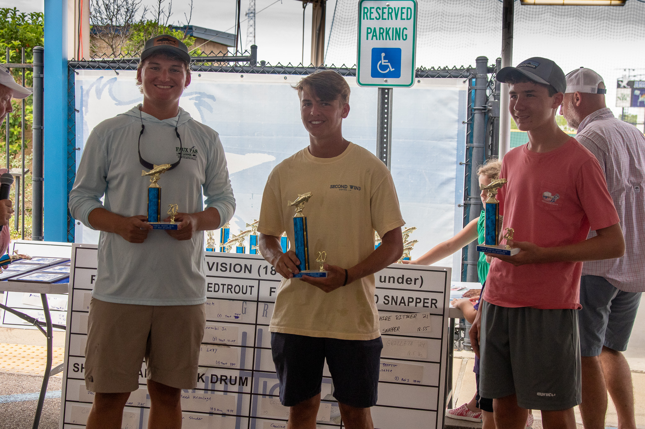 | Speckled Trout | Sam Novack 4.60 lbs | Nathan Abercrombie Jr. 4.05 lbs | Campbell Levy 3.80 lbs |