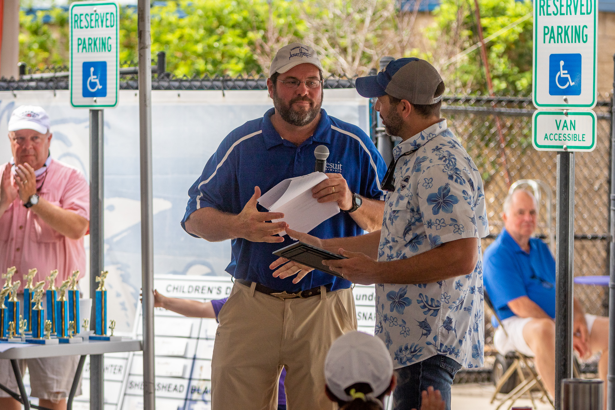 At the school’s first major in-person event in a few months, Blue Jay fishermen made an impressive showing at Jesuit’s John Ryan Stadium for the 28th Annual Blue Jay Fishing Rodeo. Despite an extensive permitting process and a careful review of the event in light of social distancing best practices, Jesuit families turned out in masks to weigh in their catches and to take part in the day’s festivities. The rodeo featured seafood catered by Max Gruenig ’06, weigh-in festivities, expert guest speakers, an exciting kayak raffle, a fantastic rodeo shirt, and more.