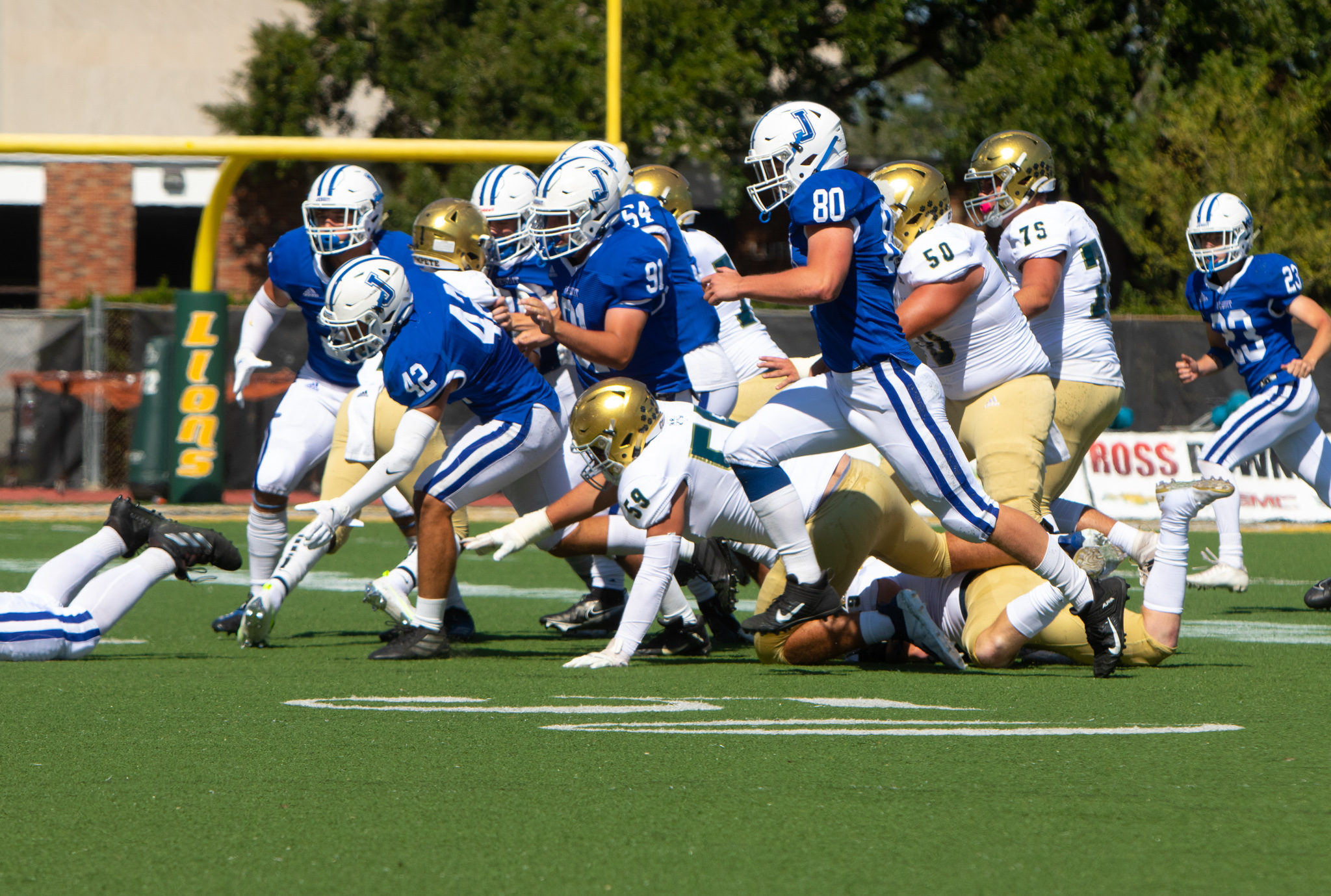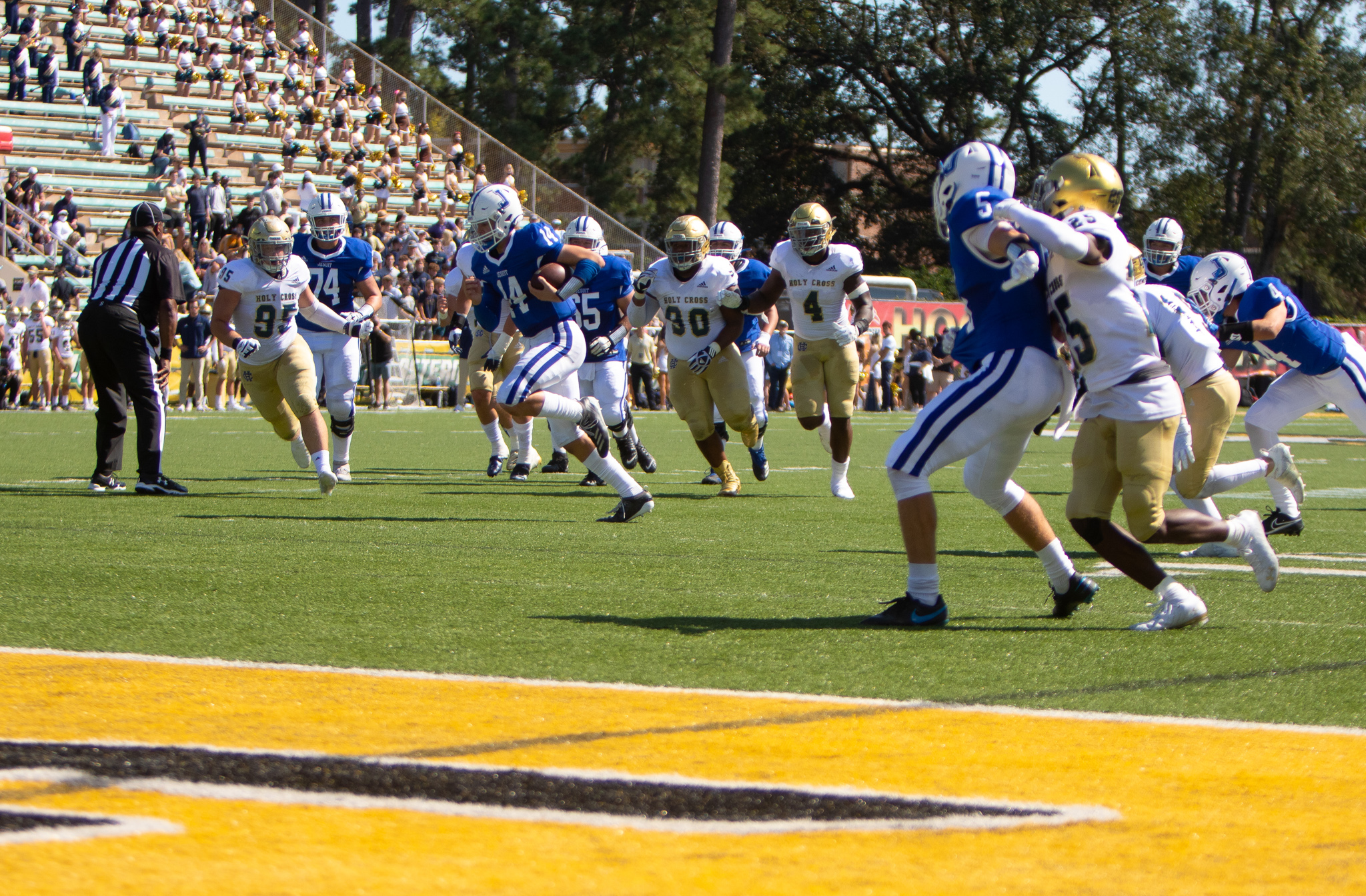 Senior cornerback Giovanni Licciardi had a solid showing, intercepting Holy Cross twice—including a pass in the end zone when the Tigers were set to score. Senior defensive end Luke Carlton also made impacts on the running and passing game with his constant pressure.