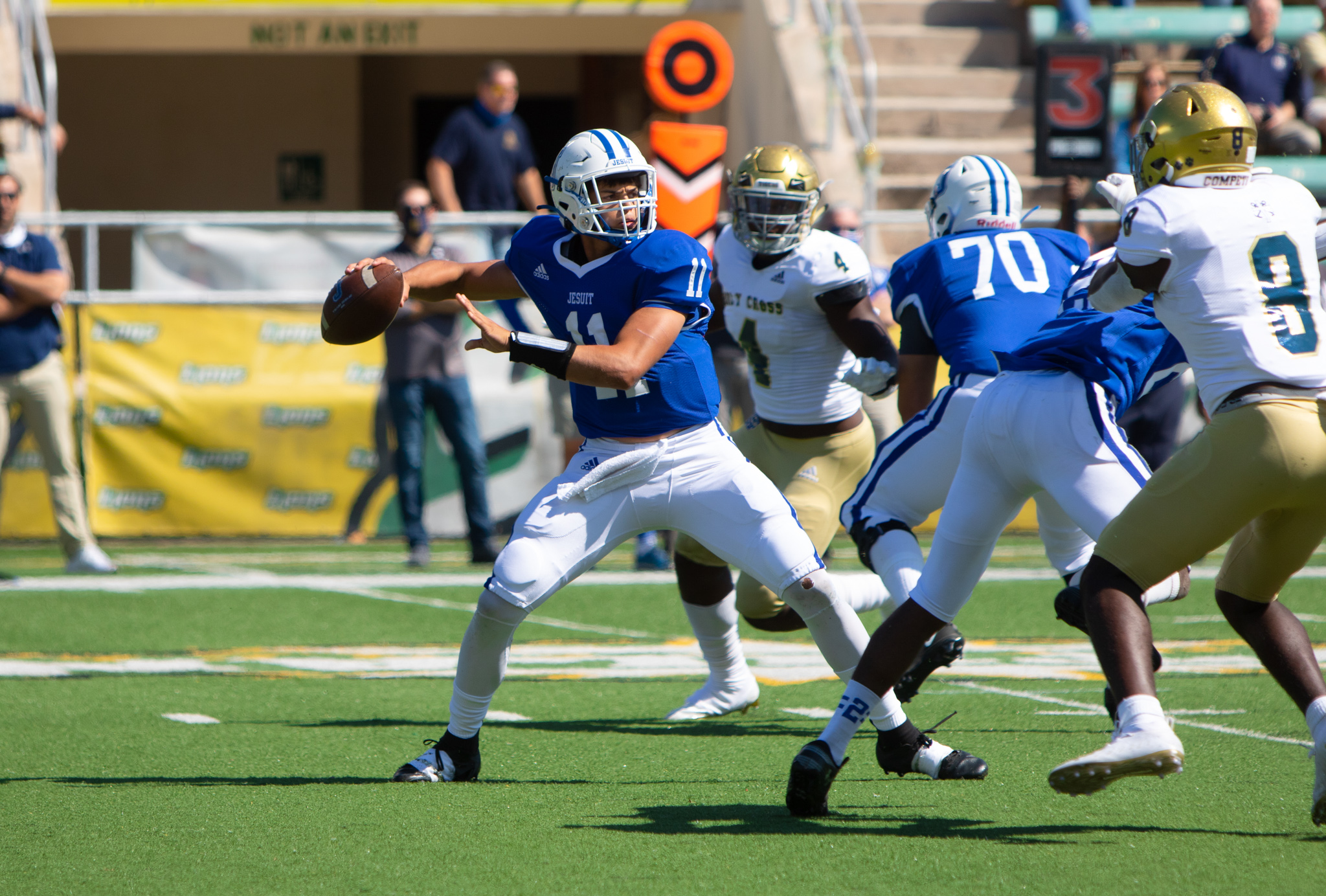 On a beautiful afternoon for football, Jesuit once again came out firing on offense. The Jays had a 28-6 lead going into halftime with no intention of looking back. When the game finally ended, Jesuit (2-1) held off the comeback from Holy Cross (1-1) and won the 101st Rivalry game 28-20.