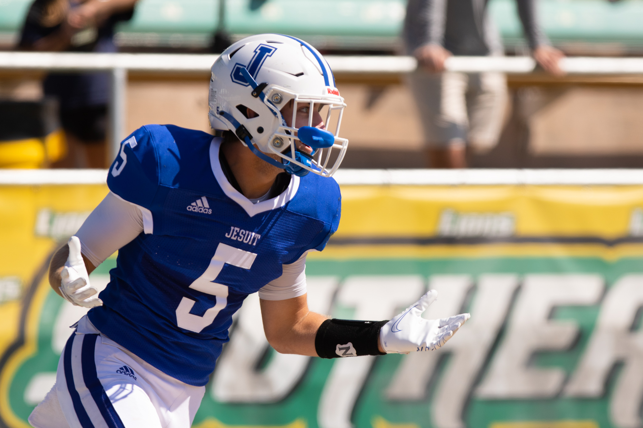 As for the high-powered Jesuit offense, it lived up to its namesake by scoring 28 first half points. The two-quarterback system worked yet again as junior Jack Larriviere and senior Luke LaForge helped the offense score touchdowns on four straight drives. Larriviere went 11 for 14 for 123 yards and one touchdown. He also added 58 yards and a score on the ground. LaForge went 5 for 10 for 116 yards and two touchdowns in the air.