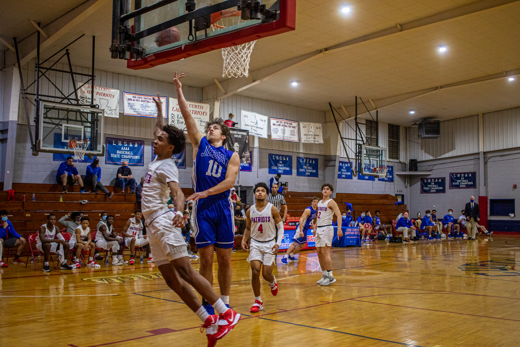 After losing three heartbreakers to Newman, Brother Martin, and Shaw, Jesuit (15-9, 3-3) got back on the winning track with superior defense and won a tough road contest against the John Curtis Patriots 48-33 on Tuesday, Feb. 2, 2021.