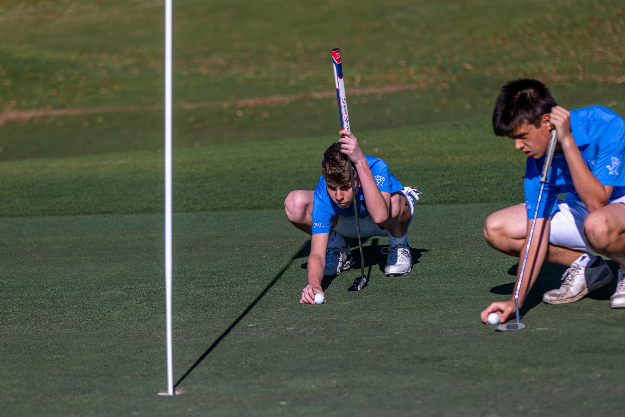 Due to the windy conditions at English turn on March 9, both squads posted higher scores than usual, but Jesuit weathered the proverbial storm and won 169-173.