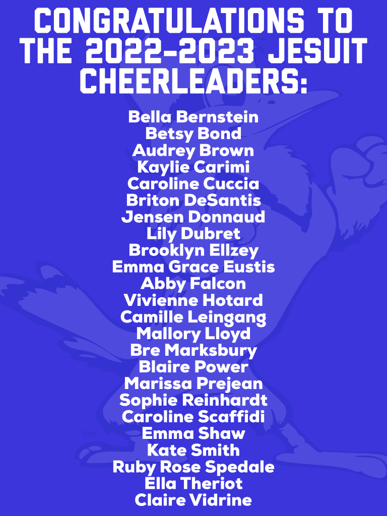 Tryouts for the 2022-2023 Jesuit Cheerleading Team are on Tuesday and Wednesday, March 15 and 16, in the Gayle & Tom Benson Arena on Banks Street.