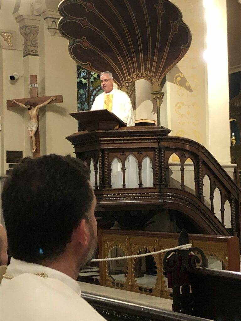 On June 6, Jesuit priests from around the country concelebrated Mass with newly ordained Dominican priest Fr. Reginald Bruce Hoefer, O.P. ’09. The Mass was celebrated on Baronne St. at the Immaculate Conception Jesuit Church. Concelebrating and assisting were Fr. Richard Hermes, S.J. (president of Jesuit High School of Tampa, FL), Fr. Cassian (Todd) Derbes, O.P. ’93, Fr. David Paternostro, S.J., Fr. Jason LaLonde, S.J., Fr. Aaron Pidel, S.J., Jesuit president Fr. John Brown, S.J., Fr. Thomas Greene, S.J. ’81, Fr. Sean Salai, S.J., Fr. Anthony McGinn, S.J. ’66, Deacon Jody Fortunato ’98, Christopher Ross ’18, and Robert Schiaffino. 4,854