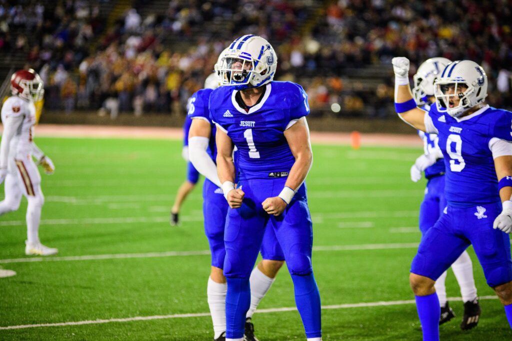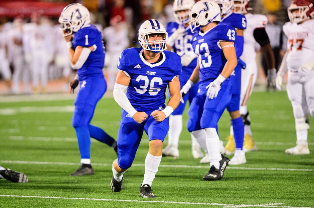 Jesuit did not have to wait long for another opportunity. Junior kicker Aidan Corbello perfectly placed the kickoff after the score, and the Jays recovered. On the second play, Larriviere found Larsen again for a 40-yard score. Those two touchdowns in the span of 20 seconds helped secure a lead that Jesuit would never relinquish.