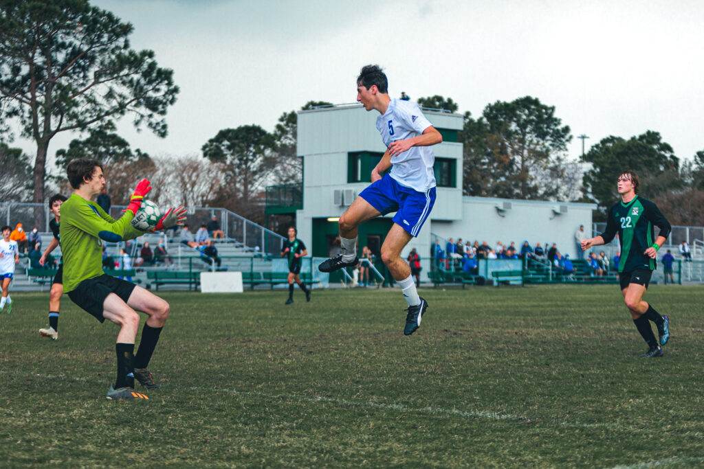 Junior Aidan Corbello scored a long goal in the first half to put the Jays on the board, and fellow junior Carter Dusang closed out the first half with another goal. The Jays put together several solid attempts on the Falcon goal in the second half leading to a header by senior John Wimberly to close out the game.