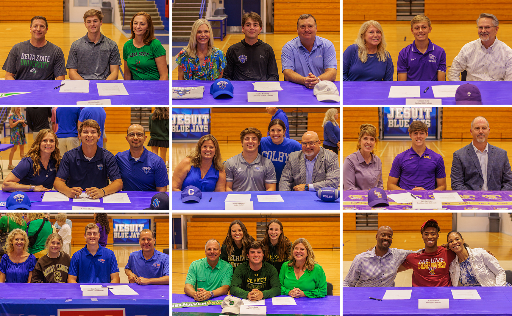 At this year’s NCAA commitment ceremony in the Benson Arena, nine student-athletes from Jesuit High School of New Orleans made commitments to continue their athletic careers in college.
