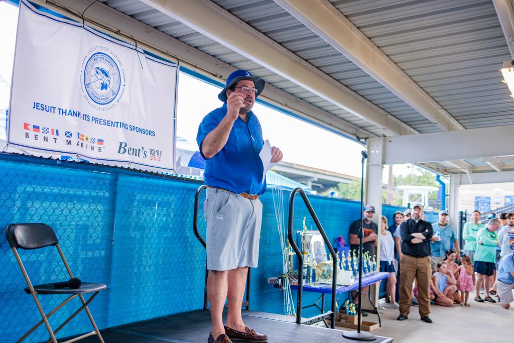 The 30th Jesuit Fishing Rodeo proceeded without a hitch. Families gathered at John Ryan Stadium on July 16, 2022, to weigh their catch, enjoy cold drinks, and eat delicious seafood. If waters were not enough to keep the participants cool, snowballs in a variety of flavors were available. In addition to all the other activities, the Jesuit Blue Jay Shop was on full display selling spirit items under the shade of their own tent. Jesuit also extends a special thank you to Brian Bent ’89 and Greg Bent of Bent’s RV and Bent Marine for the presenting sponsorship and RV and boat display.