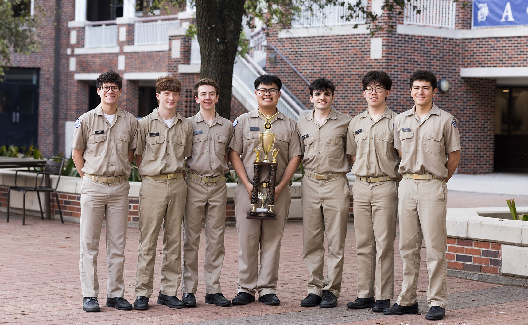Competing in the state Mock Trial tournament at the Jefferson Parish courthouse in Gretna, Louisiana, Jesuit’s team of attorneys and witnesses defeated Central High School in the tournament’s final round to capture the 2022-23 state championship. Contributing to the victory were attorneys Dalton Haydel, Wade Rogers, and Preston Rumney along with witnesses Daniel Lee, Jake Morvant, Ben Tran, and Tucker Schibler (alternate).