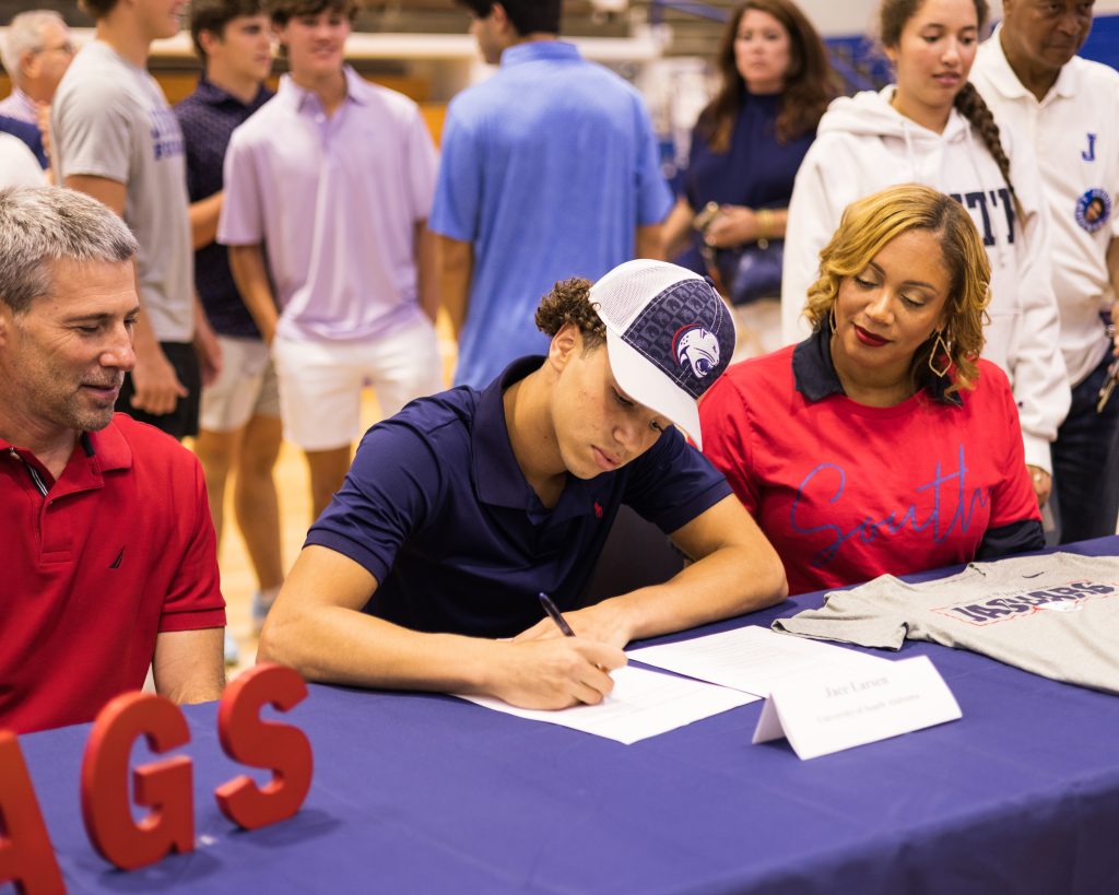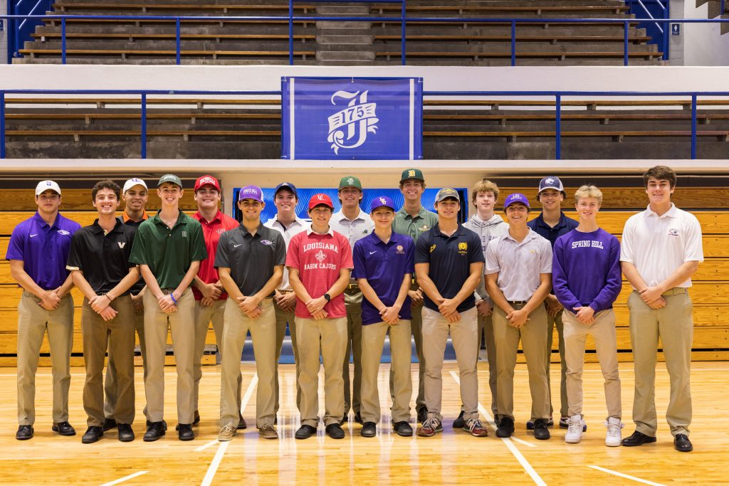 (NEW ORLEANS, LA – May 10, 2023) Jesuit High School hosted its NCAA/NJCAA/CRAA Commitment Ceremony at 12:15 p.m. on Wednesday, May 10, in the Gayle and Tom Benson Arena on Banks Street. During the ceremony, 17 Blue Jay student-athletes made commitments to continue their athletic careers in college.