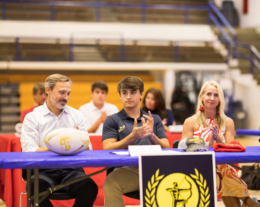 Seated on the gym floor surrounded by their families, athletes proudly wore shirts and hats from their respective destination institutions. The event concluded with a final address from Moreau, a round of applause for the commits, and a series of photographs and interviews with the press.