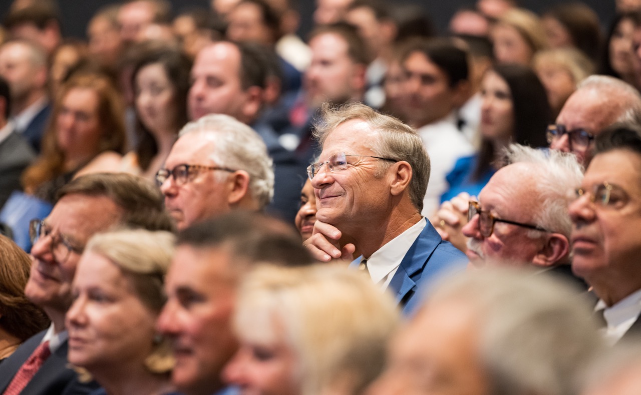 Peter Finney Jr. ’74, Jesuit’s Alumnus of the Year, followed Fr. McGinn’s remarks with his own reflection on the formative power of a Jesuit education. Finney’s speech was as heartfelt as it was humble, capturing the profound impact of his years at Jesuit. “Jesuit transformed my life in so many ways,” he said, recalling his days as the smallest student on campus—a 4-foot-10 freshman weighing just 80 pounds—and the lifelong friendships and lessons he gained.