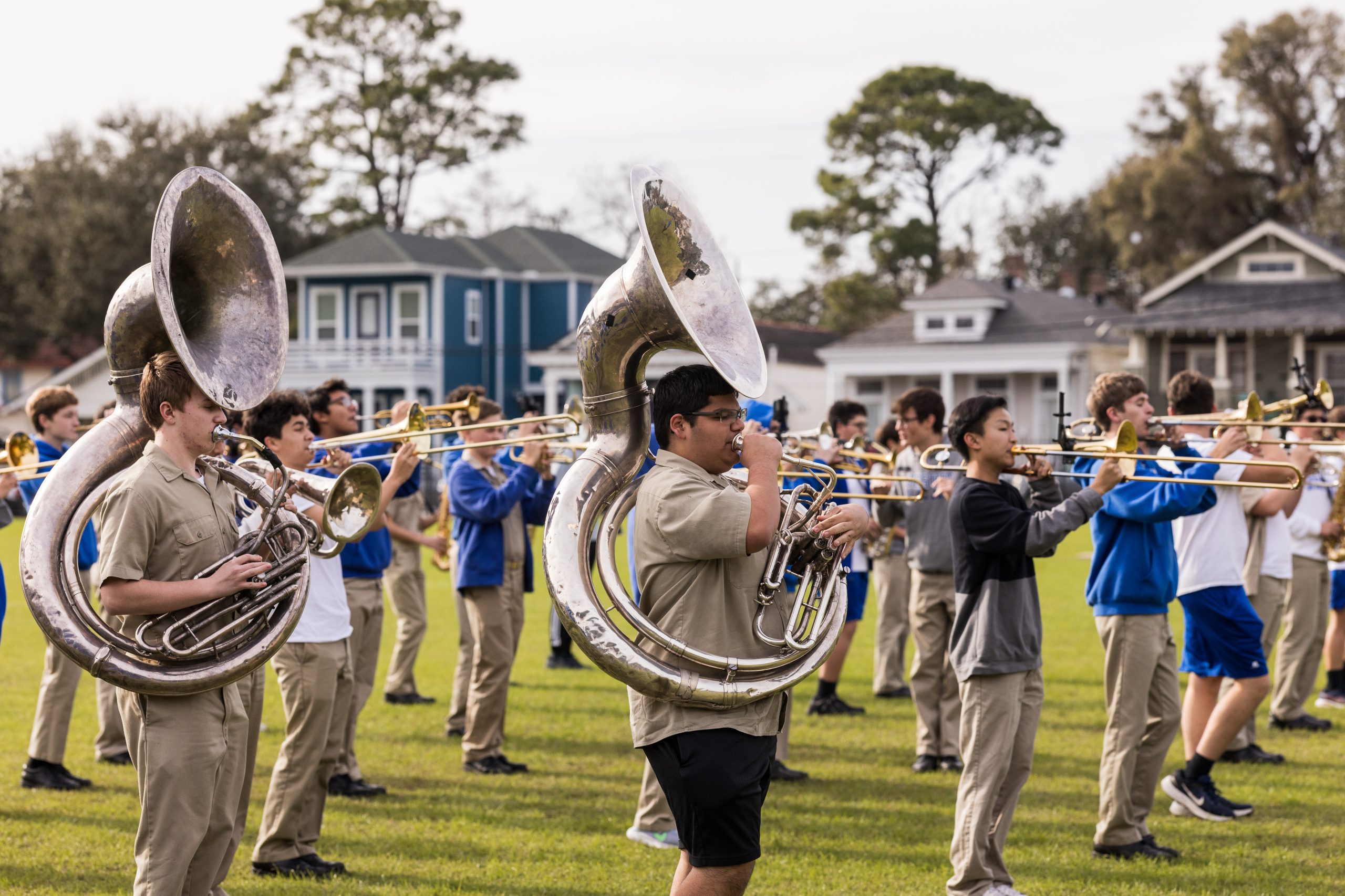 The sounds of Mardi Gras are filling Will Clark Field daily as the Blue Jay Marching Band rehearse for its annual parade season. Alongside the band, the Jayettes, Cheer, and MCJROTC are eagerly preparing to represent the Blue and White among the purple, green, and gold of Carnival.
