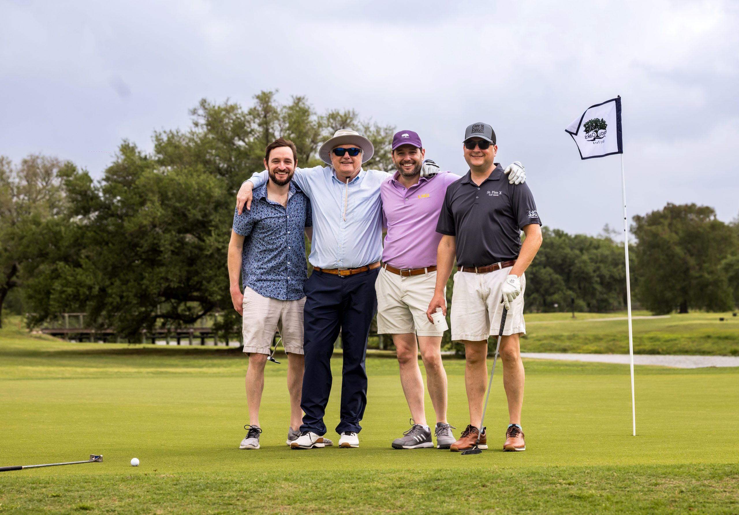 The 2025 Jesuit Golf Classic drew more than 200 golfers to Bayou Oaks in City Park for a windy, yet sunny skies day of friendly competition and fellowship. The event was proudly presented by First Horizon Bank, represented by Karl Hoefer ’76, and Marsh McLennan Agency, represented by Clint Romig ’94 and Tommy McMahon ’83.