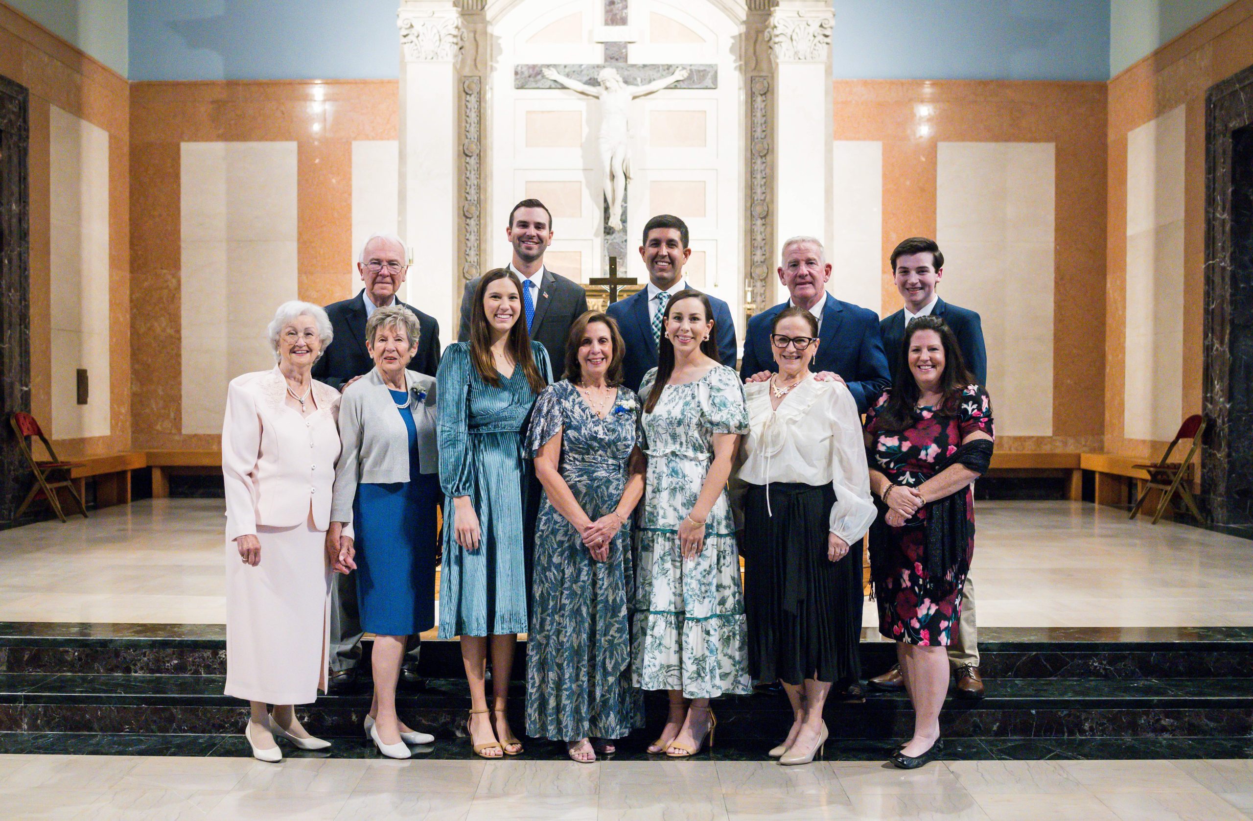 As the liturgy unfolded, many found their eyes drawn upward to the celestial ceiling and the paintings of the North American Martyrs that line the walls. Together, these images served as guides helping to connect more deeply with the divine. Fr. Brown further explored the unique character of Catholic worship, the symbolism of the sanctuary and altar, and the hopeful signs of renewed devotion among young Catholics, including Jesuit’s own students and recent alumni. The Mass was celebrated by Frs. John Brown, S.J., Anthony McGinn, S.J. ’66, Roy Joseph, S.J., and Penn Dawson, S.J., and enriched by music from the student choir led by Patrick Cragin ’06.