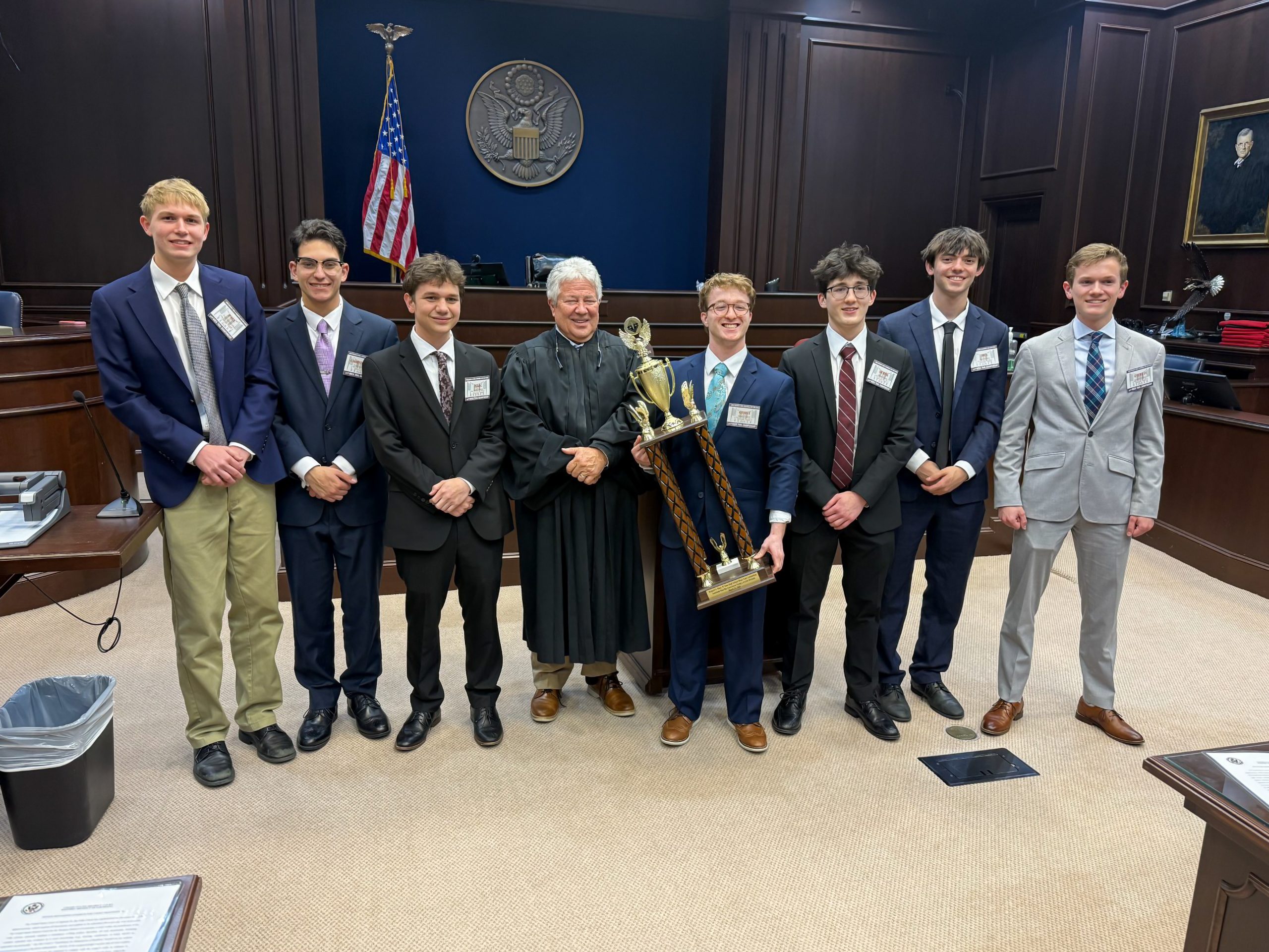 The championship run came just two weeks after the Jays competed at the regional tournament held at the 24th Judicial District Court in Gretna. There, three teams represented the Blue Jays in a competitive field. The all-senior team of attorneys Ben Farmer, Christopher Juge, and Derek Moore directed the courtroom strategy, while witnesses Grant Carroll, Everett Kramer, Paul Sparacello, and Isaac Uhlich delivered detailed and persuasive testimony. The team advanced to the final round before falling in a closely contested trial to Haynes Academy. As regional runner-up, the team secured its place in the state tournament.