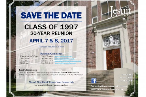 Class of 1997: Save the Date for Your 20-Year Reunion