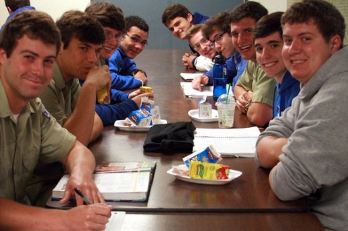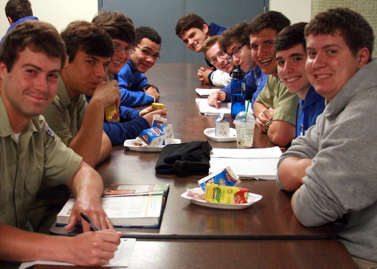 A Working Breakfast… Wild Photo Archives Posted April 4th, 2013 Last updated July 10th, 2013 Print Email Share Seniors Harrison Cutrera (left) Chris Powers, Jared Mentz, Deven Francis, Jacob Campos, Matthew Arseneaux, Zach Ciolino, and Grant Candies enjoy a working breakfast in the Jesuit cafeteria on Thursday morning.