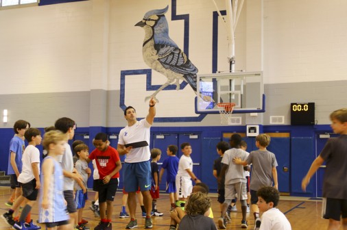 For two weeks at the beginning of June, the newly-renovated gym becomes Biddy Basecamp, as young players from ages 6-11 descend upon the hardwood for summer basketball camp. With both morning and afternoon sessions, the camp develops fundamentals, hosts team play and individual competition, and strengthens understanding of the game through instructional videos. Assistant basketball coach Jonathan Hernandez ’00 calls out the schedule of the next competition as players run to their spots.