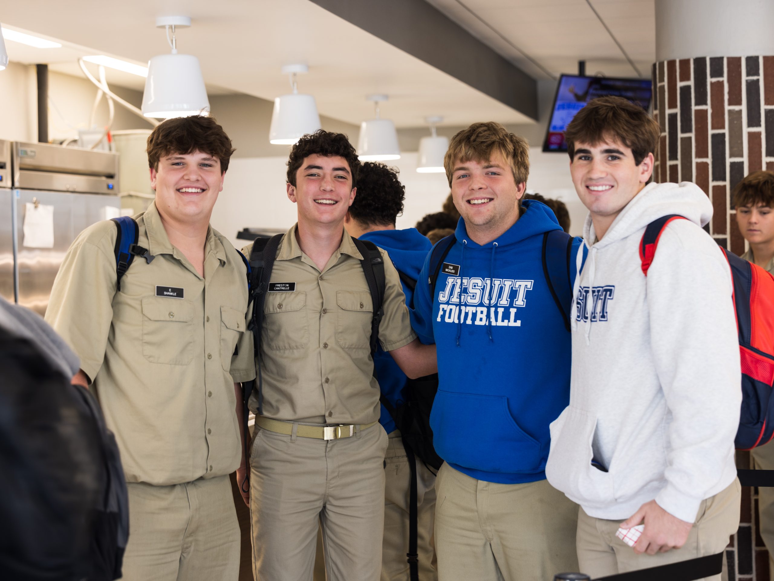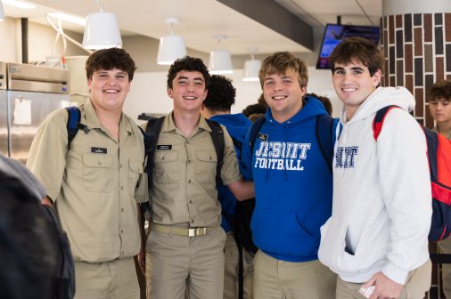 Seniors Ethan Shankle, Preston Cantrelle, Sam Macaluso, and Caden Sanderson eagerly anticipate “Chicken Day” in the cafeteria, a favorite among Blue Jays. Pigeon Catering serves up delicious fried chicken tenders with a special sauce that rivals the renowned Cane’s sauce. The popularity of this meal is evident in the long lines that form, as students excitedly await their turn to enjoy this lunchtime
