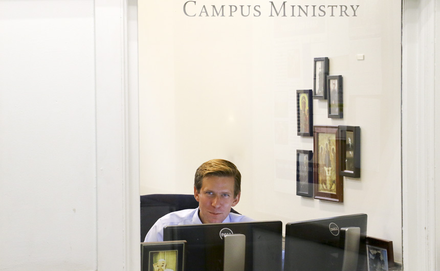 “Half and half,” answered campus ministry director Peter Flores ’09, when asked about the tone of the 8th grade retreat held this past Saturday. “It was a great mix of fun activities – like the skit on the life of St. Ignatius and the water balloon launch symbolizing the cannonball that wounded St. Ignatius – and great spiritual moments like praying in adoration and at Mass in our beautiful chapels.” Flores added that the retreat focused on two talks. The first was about Ignatius’ conversion, and the other about Ignatius becoming a Jesuit. The activities concluded with a walking pilgrimage that invited 8th graders to figuratively walk the path of Ignatius in order to grow together as a class, in their faith, and in their knowledge of the founder of the Jesuits.