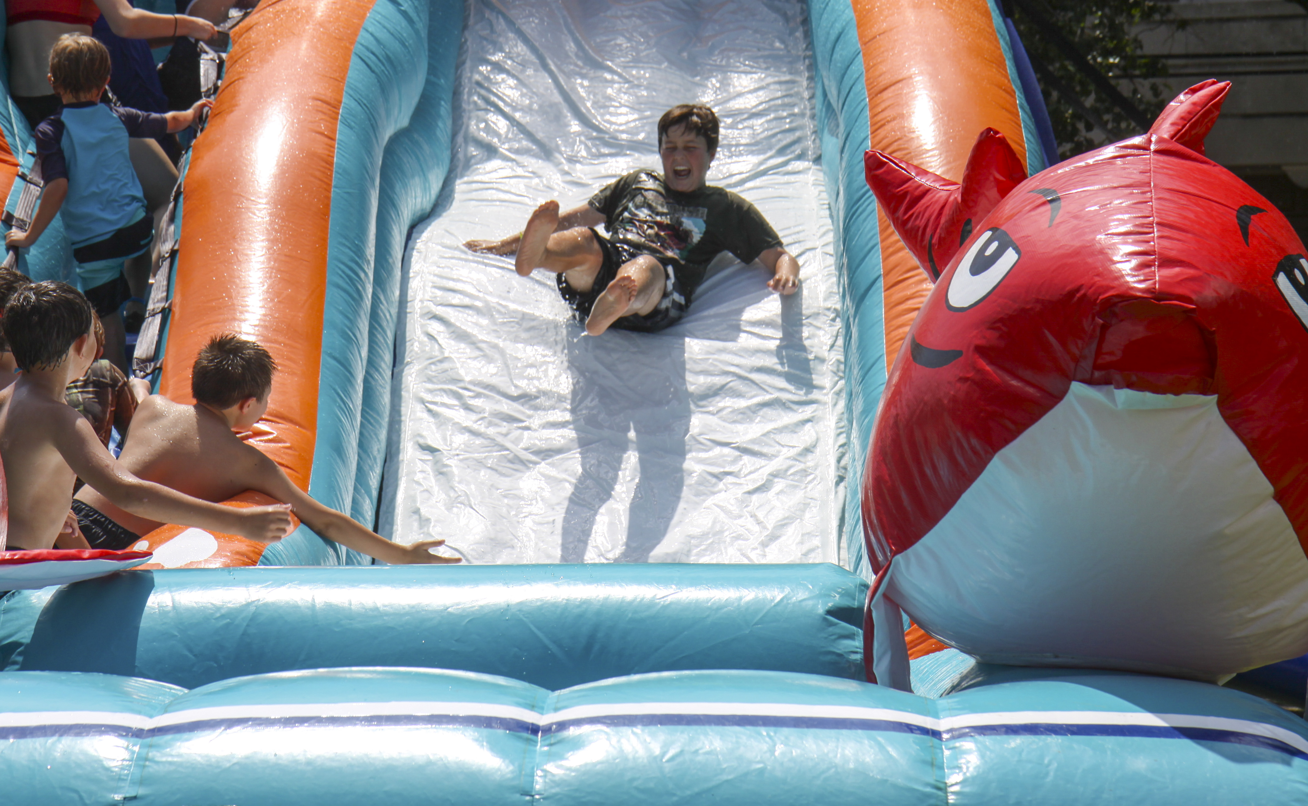 Jesuit summer day campers celebrate the end of the first session with a field day on Will Clark Field. Campers kept cool in the summer heat with large inflatable water slides and field games. Jesuit offers a fun-filled summer day camp for boys ages 5-12. Jesuit Summer Day Camp runs two three-week sessions. The second session begins Monday and ends Friday, July 8.