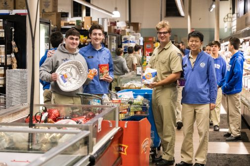 The Thanksgiving Drive received enthusiastic participation from various co-curricular and school groups, including the Blue Jay Band, Cheerleaders, Jayettes, Sodality, Pro-Life Club, National Honor Society, Mentoring Group, Robotics Team, Philelectic Society, swim team, student council, administrative team, and advancement team. Once the baskets were assembled on campus, homerooms, alumni, and other groups distributed 640 baskets to homes in the New Orleans area.