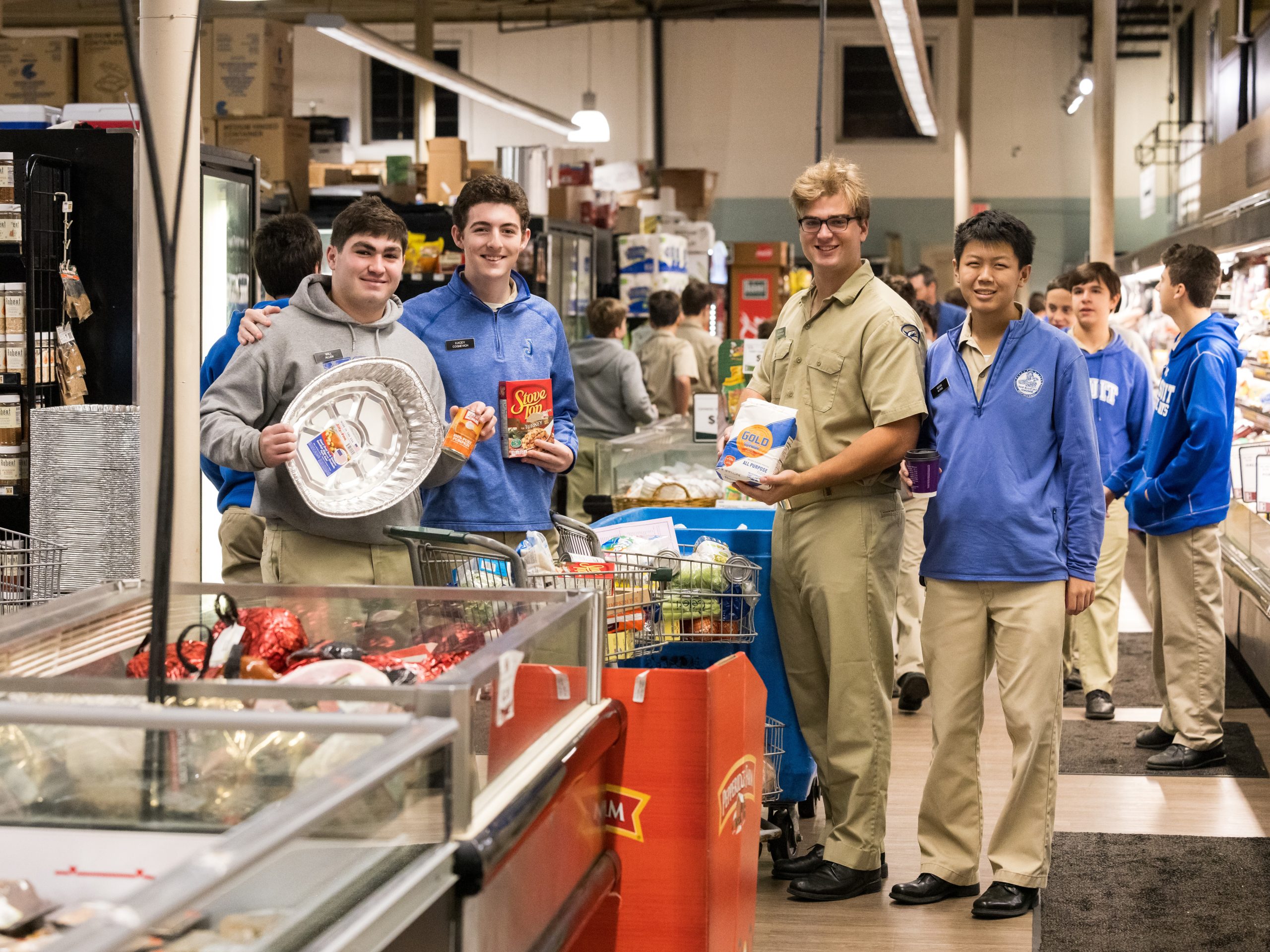 The Thanksgiving Drive received enthusiastic participation from various co-curricular and school groups, including the Blue Jay Band, Cheerleaders, Jayettes, Sodality, Pro-Life Club, National Honor Society, Mentoring Group, Robotics Team, Philelectic Society, swim team, student council, administrative team, and advancement team. Once the baskets were assembled on campus, homerooms, alumni, and other groups distributed 640 baskets to homes in the New Orleans area.