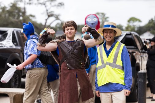 The Student Council hosted its inaugural Trick or Trunk Halloween event, transforming Traditions Courtyard into a festive arena of creativity and fun. Seniors Rex Bove, dressed as a warrior, and Aidan Wang, decked out as a construction worker, along with many other costumed students added to the vibrant atmosphere. Blue Jays eagerly collected candy from creatively decorated trunks, reveling in the spirit of the season. The event culminated in the annual costume contest, where students showcased their imaginative costumes, bringing a lively and spirited close to the Halloween celebration.