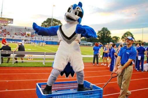 Jayson sometimes would rather ride than fly, so he jumped into a medical supply wagon and henpecked the affable Ken Trahan, Jesuit’s athletic trainer, to pull him along the cinder track in front of the Blue Jay fans who were gathering to watch Friday evening’s football game against John Curtis at Joe Yenni Stadium.