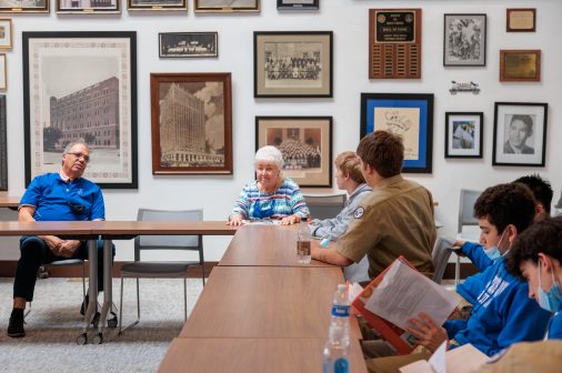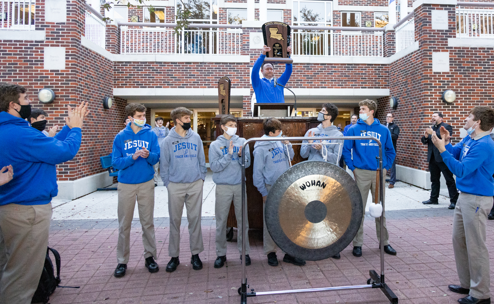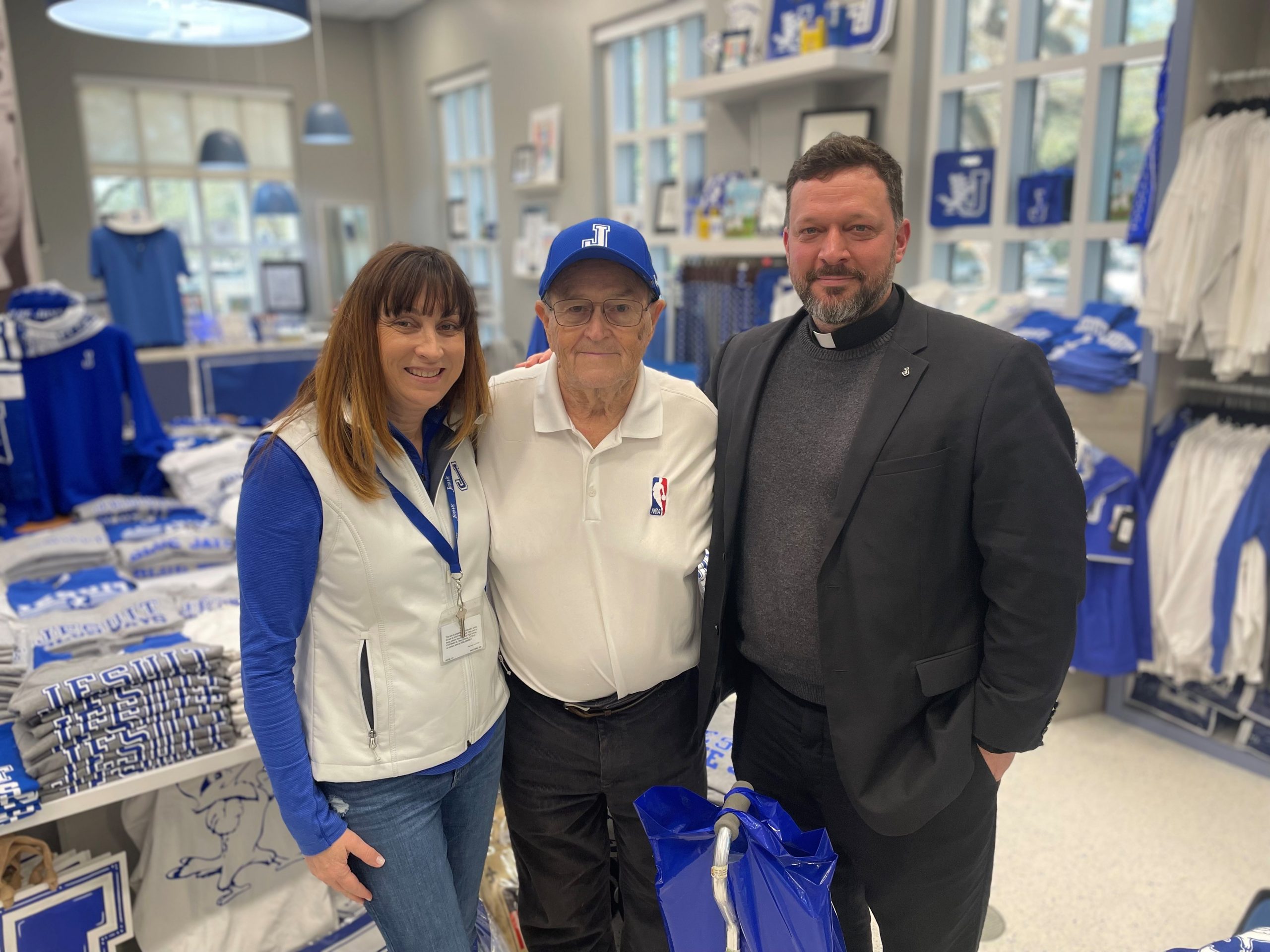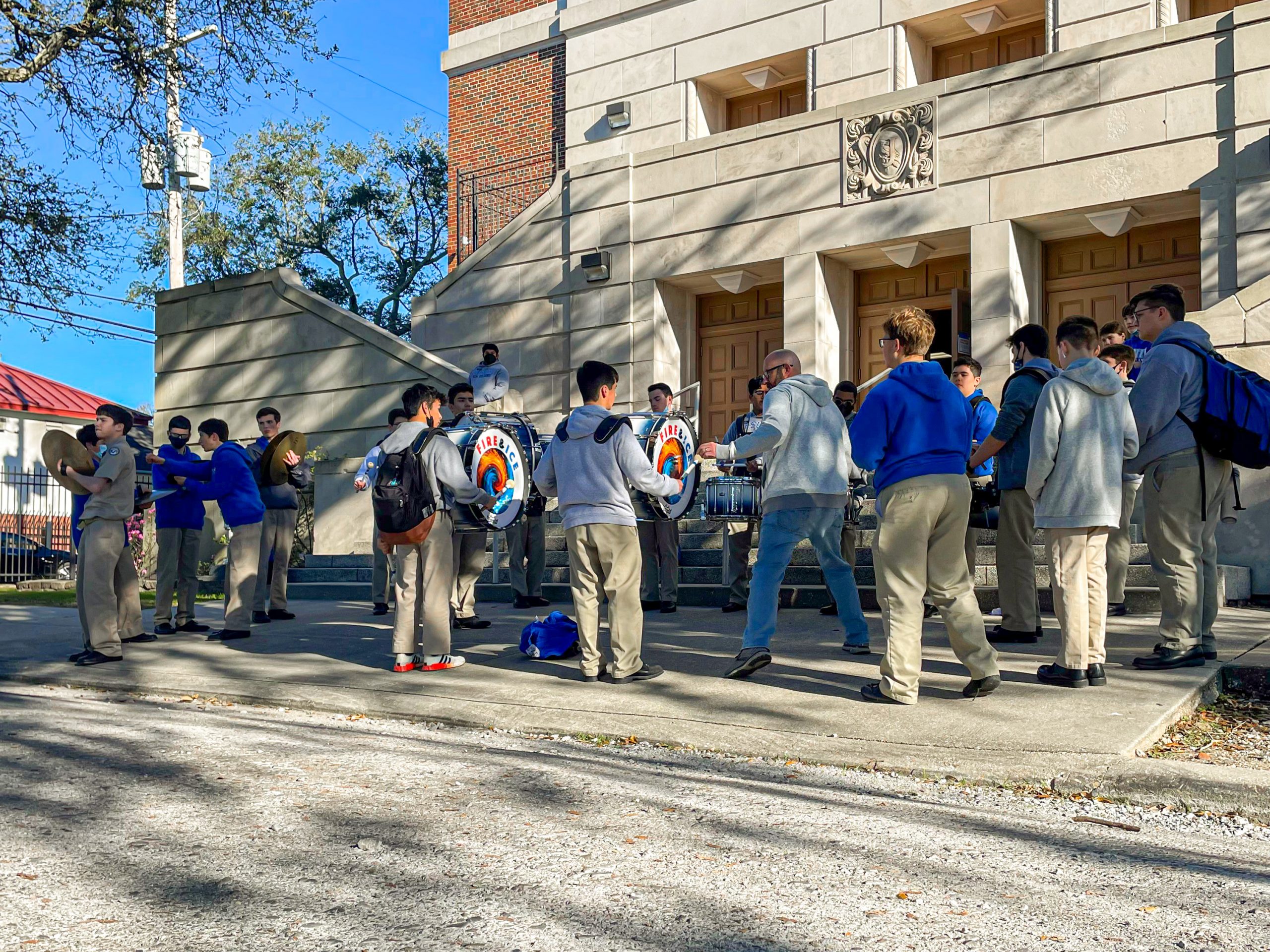 On Wednesday, Feb. 9, members of the Jesuit Men of Color and the Philelectic Society travelled to the Jefferson Performing Arts Center for a matinee performance of “FLY.” The play was about WWII African American fighter pilots known as The Tuskegee Airmen, and the production featured Jesuit alumnus and former Phil, L.G. Williams ’12, as the tap dancing griot. In his role, L.G. portrayed a character influenced by the West African traditional griot: a storyteller, poet, and musician who passes on oral history. L.G. is seen here with his former director, Mrs. Kate Arthurs-Goldberg, the Phils, and JMOC members who attended the show. JMOC Moderator Jay Combe ’83 was also in attendance, as was coach Rudy Horvath ’86 who served as the driver.
