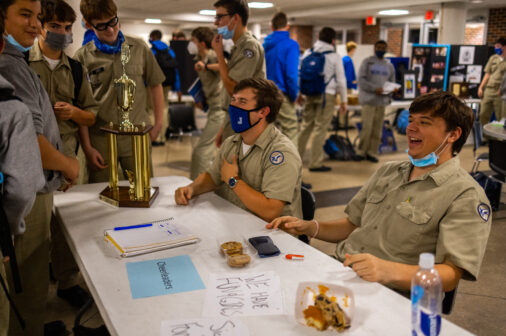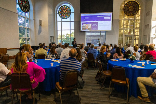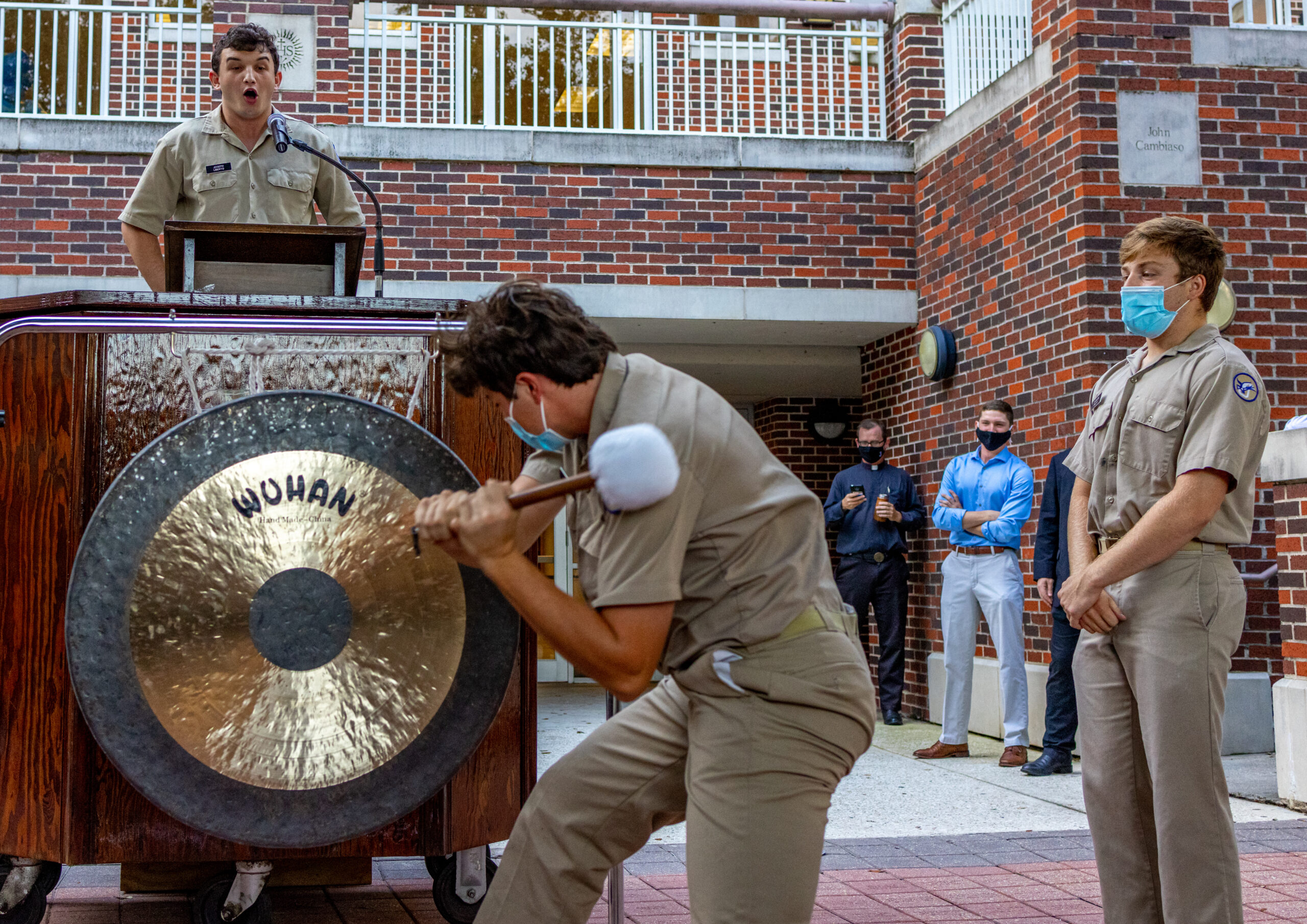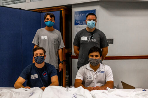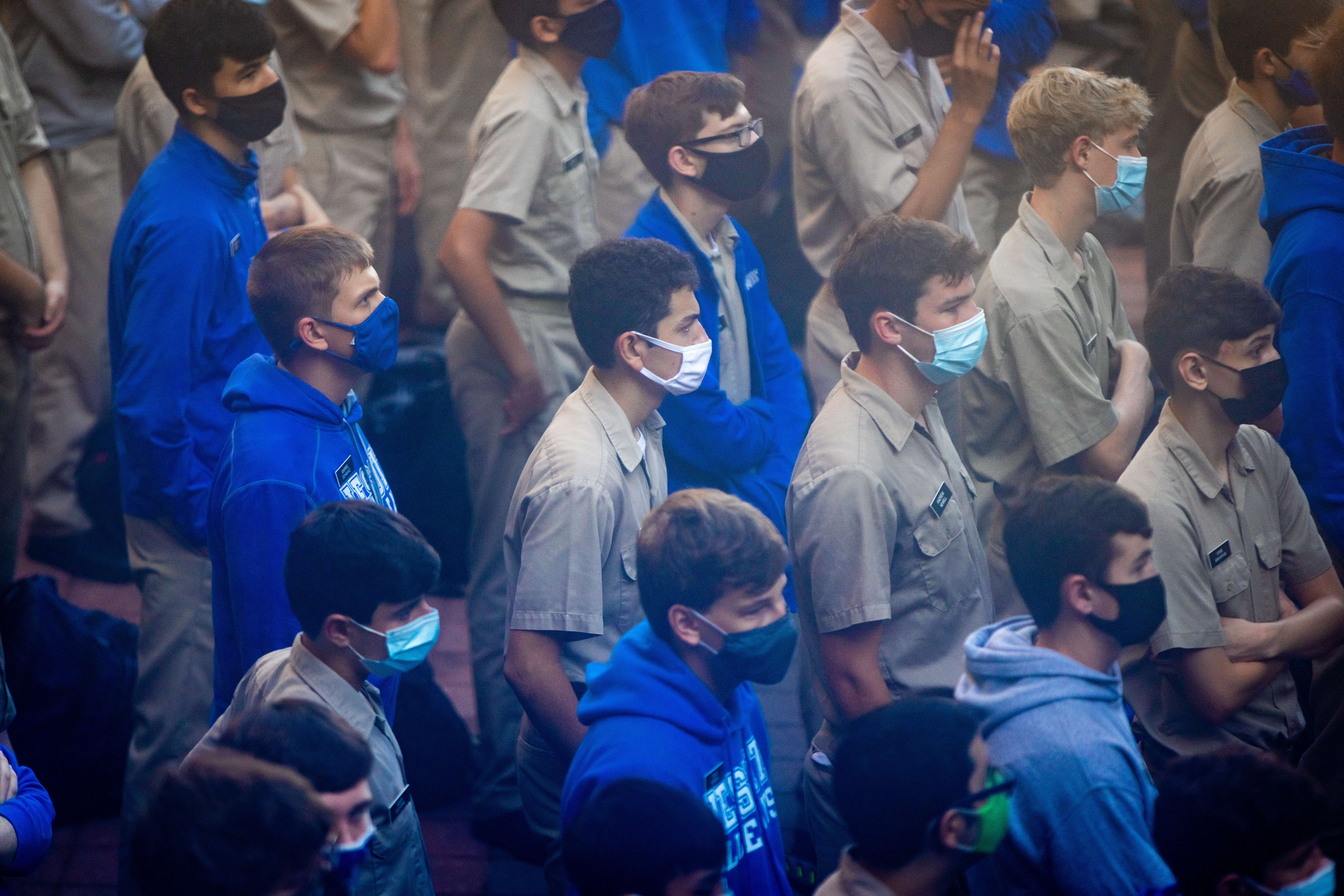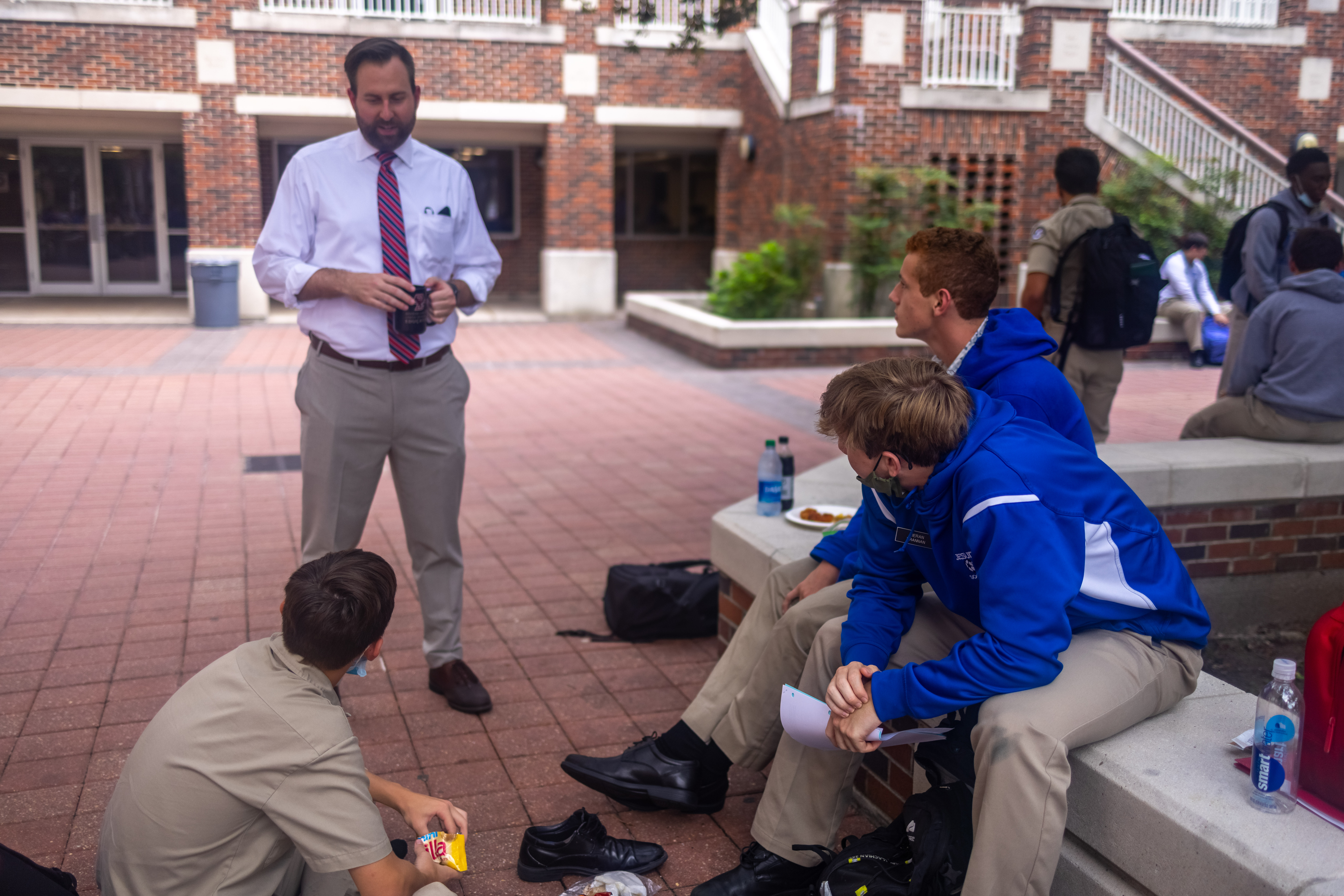 With no electricity or running water on campus, the Holy Name of Jesus Chapel—known by students and alumni as the “small chapel” on campus— continues to be used by the community of Jesuits on Carrollton & Banks. In this rare photo, the iconic stained glass windows are opened to allow airflow into the chapel. Click here to glimpse Fr. John Brown, S.J., conducting the Rite of Eucharistic Exposition and Benediction assisted by Jeff Miraflor, S.J., while Fr. Stephen Kramer, S.J., looks on in prayer.
