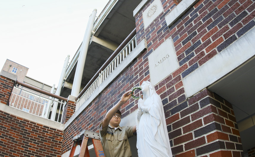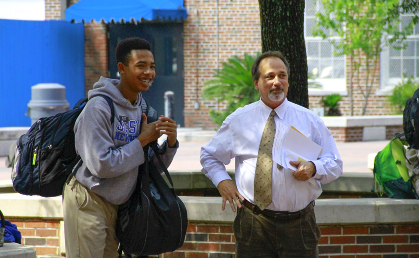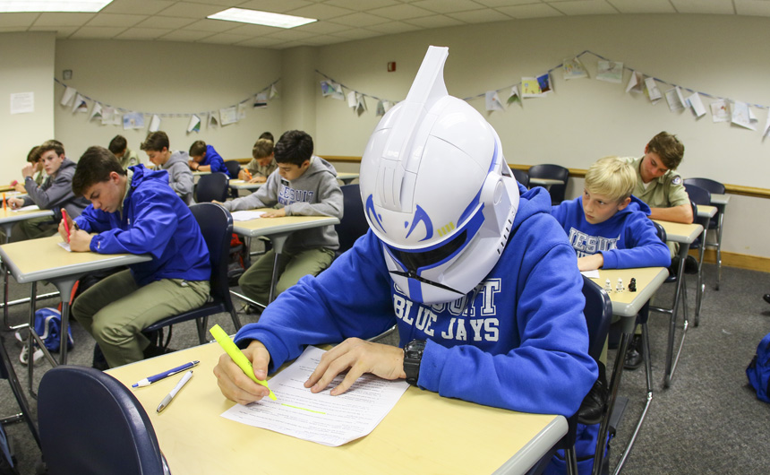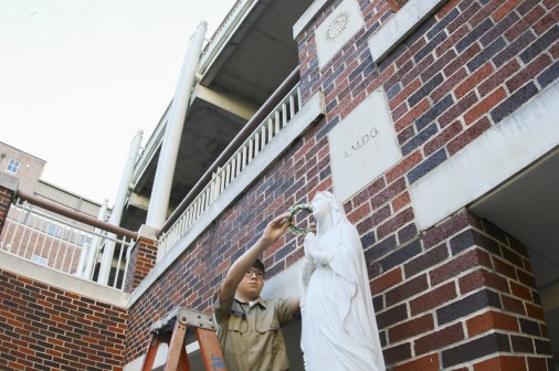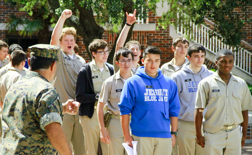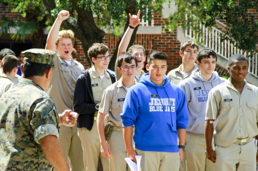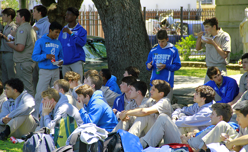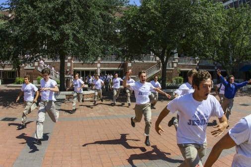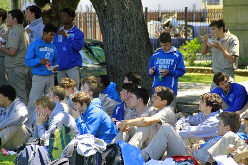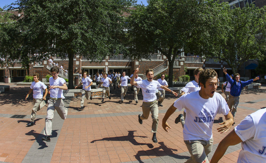 Does Jesuit have a new mascot in the works? Well, not exactly. If you’ve ever walked around campus at lunch time, you may have seen Jesuit’s president, Fr. Christopher Fronk, S.J., walking with his best buddy, Shipmate. Shippy, as he’s affectionately known, is a fetching mixed-breed pup (Yorkshire Terrier and Shih Tzu) and no stranger to hard work. Shippy can sit, shake, rollover, stick-em-up, jump through hula-hoops, and even say his prayers. Fr. Fronk adopted Shippy when he returned from his tour of duty in Afghanistan, and it’s a match made in heaven…