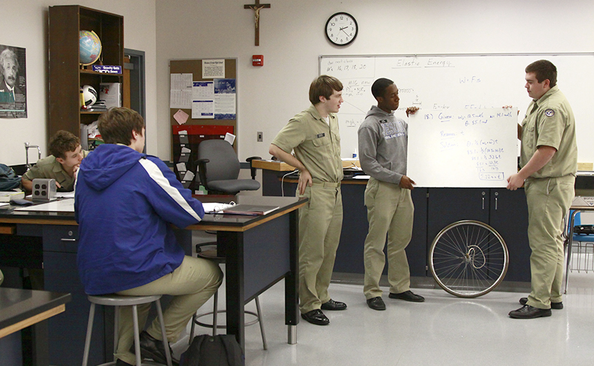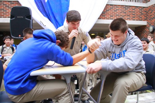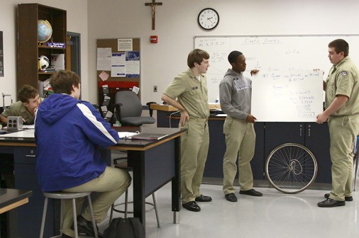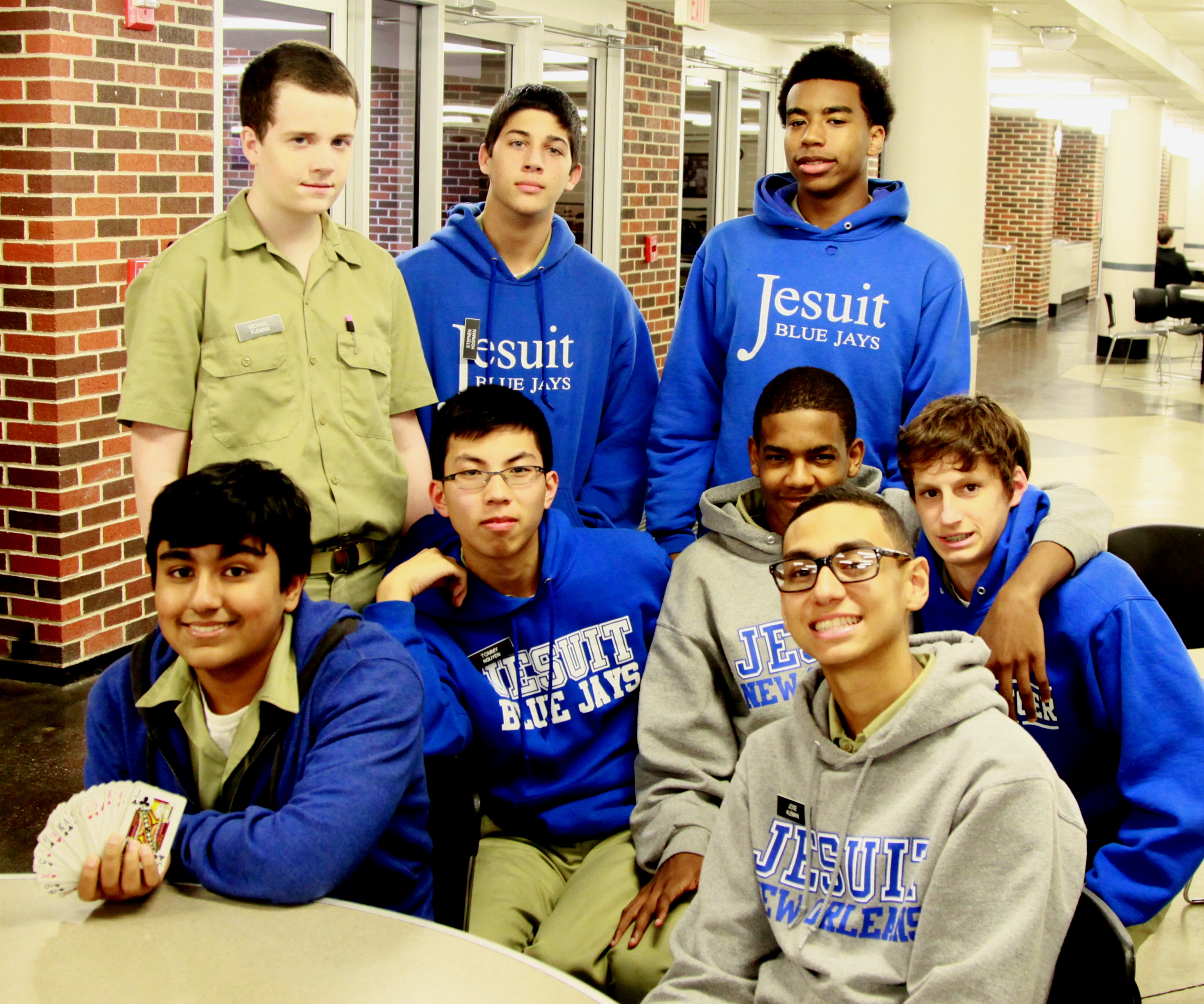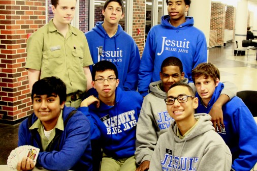 Often when it’s raining and cold outside, Health and PE classes move indoors. Sometimes this leaves time for unofficial extra-curriculars. Today, the Wild Photographer found sophomore Baasel Syed entertaining his classmates with a card trick. Let’s just say David Blaine’s got nothing to worry about. From left are sophomores Syed, Michael Fleming, Tommy Nguyen, Stephen Hoorman (back row), Myles Cyprien, Eric O’Neal (back row), Patrick Rye, and Jose Aleman (front).