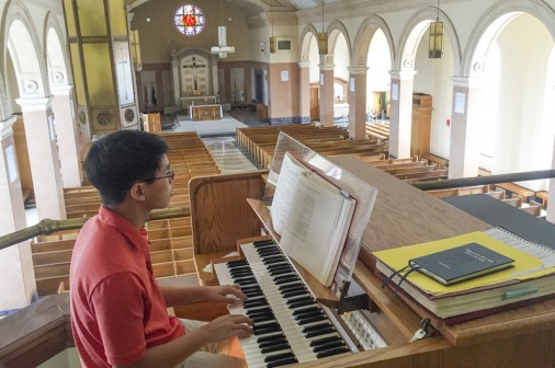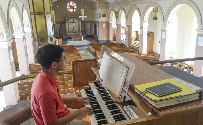 Sophomore Christopher Vuong is taking advantage of his summer vacation to brush up his skills on the organ in the Chapel of the North American Martyrs. Last school year Vuong was recognized as an all-state musician for his talent with the trumpet. In the not-too-distant future, the chapel will be brimming with students at the annual Mass of the Holy Spirit. The organ is a musical instrument perfect for use in the Catholic liturgy. As Pope Emeritus Benedict XVI said in 2006, the organ is “capable of echoing and expressing all the experiences of human life. The manifold possibilities of the organ in some way remind us of the immensity and the magnificence of God.”