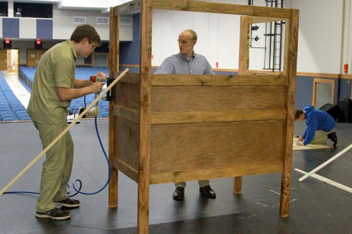 Sophomore Michael Gieseler and Mr. Charles Bourg ’10 work together building a piece of the set for the Philelectic Society’s upcoming spring production of “On the Town.” Performances are April 7-9 and April 15-16. The show features a cast, crew, and orchestra of more than 100 talented artists, and a featured performance by faculty member Prof. Nilda Rivera. The musical is the tale of three sailors on a 24-hour leave from their ship docked in New York City. Read more and buy tickets online.