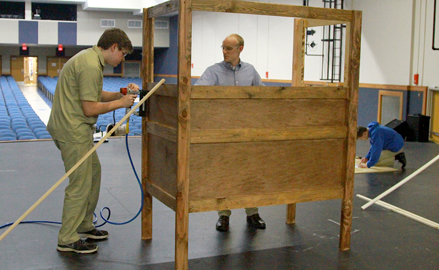 Sophomore Michael Gieseler and Mr. Charles Bourg ’10 work together building a piece of the set for the Philelectic Society’s upcoming spring production of “On the Town.” Performances are April 7-9 and April 15-16. The show features a cast, crew, and orchestra of more than 100 talented artists, and a featured performance by faculty member Prof. Nilda Rivera. The musical is the tale of three sailors on a 24-hour leave from their ship docked in New York City. Read more and buy tickets online.