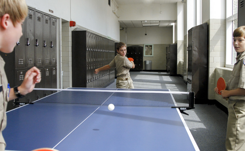 Pre-freshman Hunter Hoffmann shoots a topspin forehand across to classmate Skyler Pitisci during tryouts for the Table Tennis Team. Tryouts are held Wednesday and Thursday of this week after school. The team is one of the many co-curricular organizations seeking new members at the beginning of the school year.