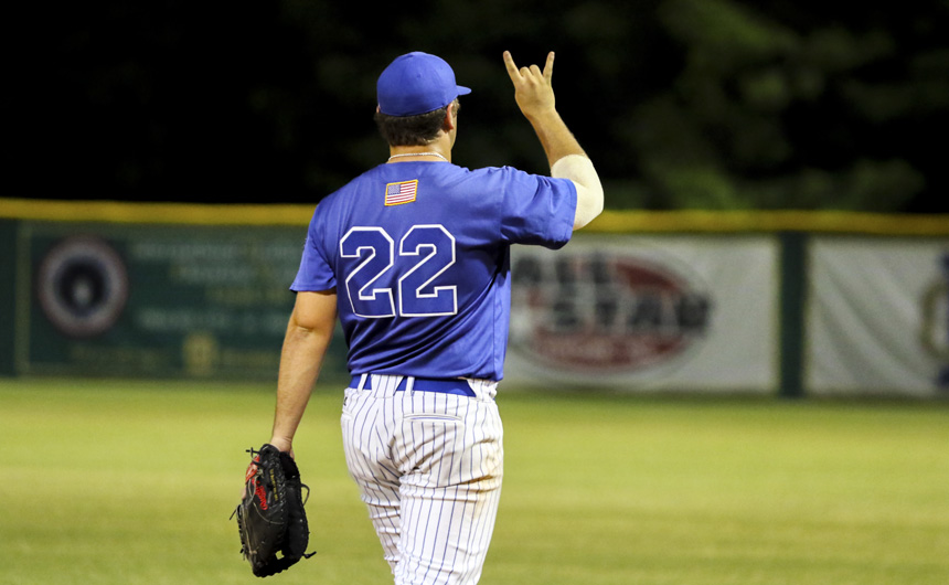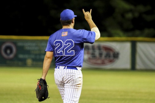 Rising senior and first baseman Marc Dougherty (#22) puts up the “2-out” symbol to inform the outfielders that only one out remains in the inning. And if this baseball Wild Photo hasn’t shown enough of the number “2,” note that the Retif Oilers have crossed the midway point in their season…moving on to Part Two! Upcoming games and tentative postseason dates can be found on the American Legion Baseball Schedule.